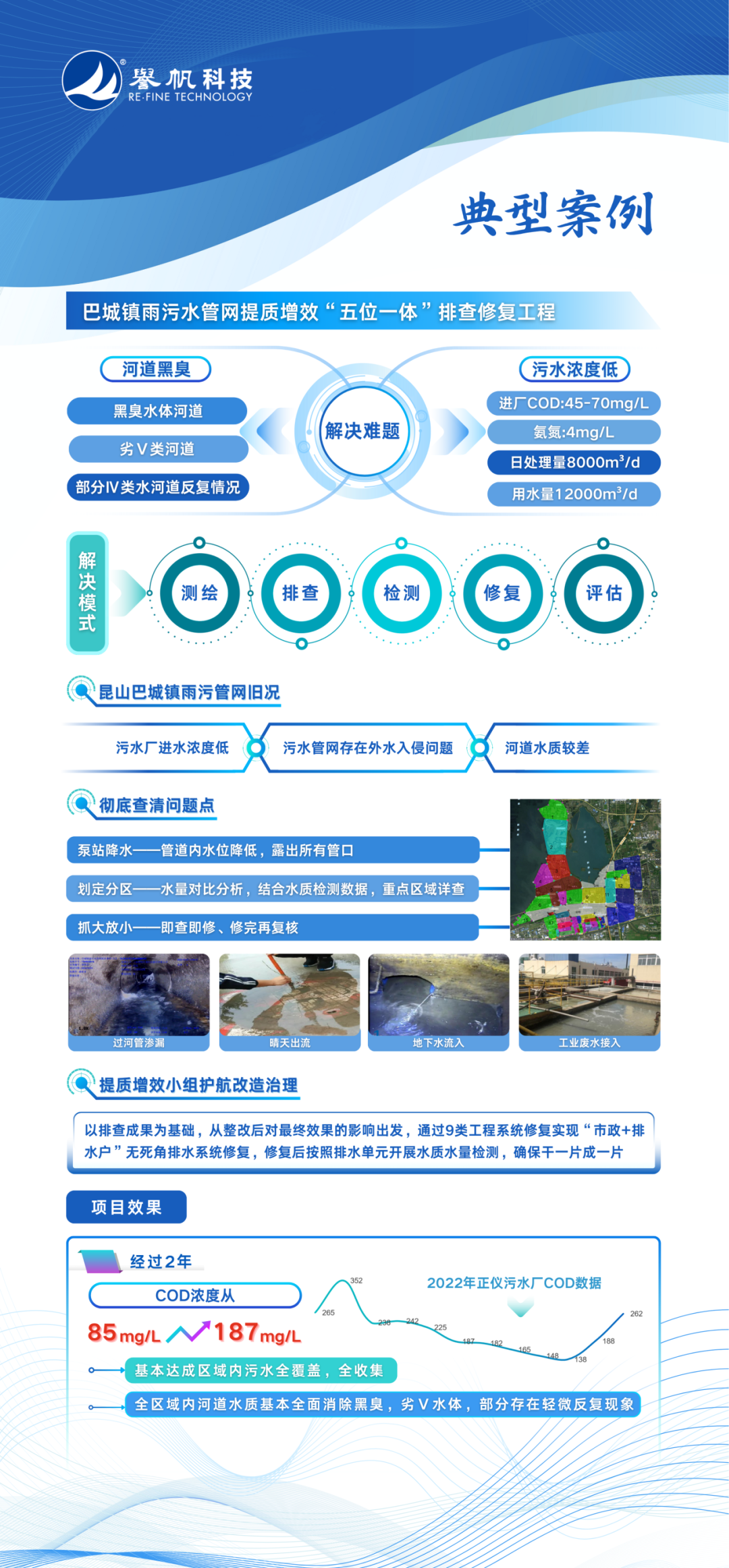 1. 开展从末端至源头、干管到支管的全流程排查,彻底查清问题点——雨水系统中的污染物来源和污水系统中的外水来源。